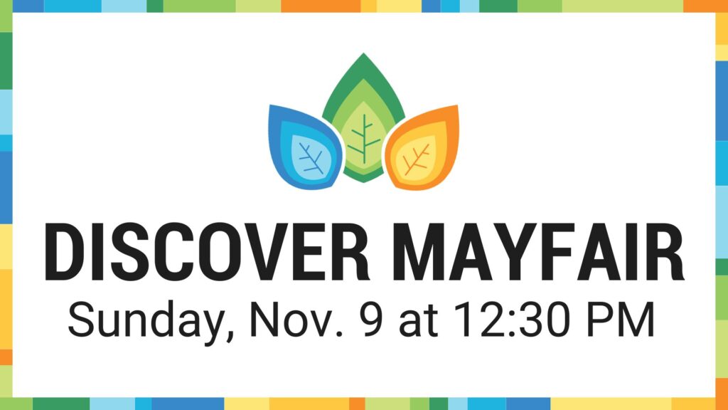 Are you new to Mayfair and want to learn more about our ministries and pastors? Have you been attending for a while and are interested in joining the church as a member? You are invited to Discover Mayfair on Sunday, November 9th at 12:30 PM. We’ll gather for lunch after the morning worship service and we will share about Mayfair’s history, ministries, leadership teams, and pastors.