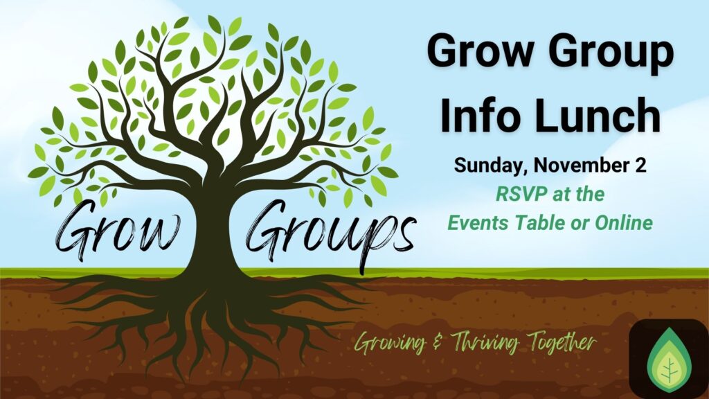 Join us on Sunday, November 2nd, for an informational lunch where we’ll learn more about what being part of a Grow Group means and how it’s different from Thrive Groups and Equip Courses. This informational lunch is for those who are interested in joining a Grow Group and are not already involved in Grow Groups.