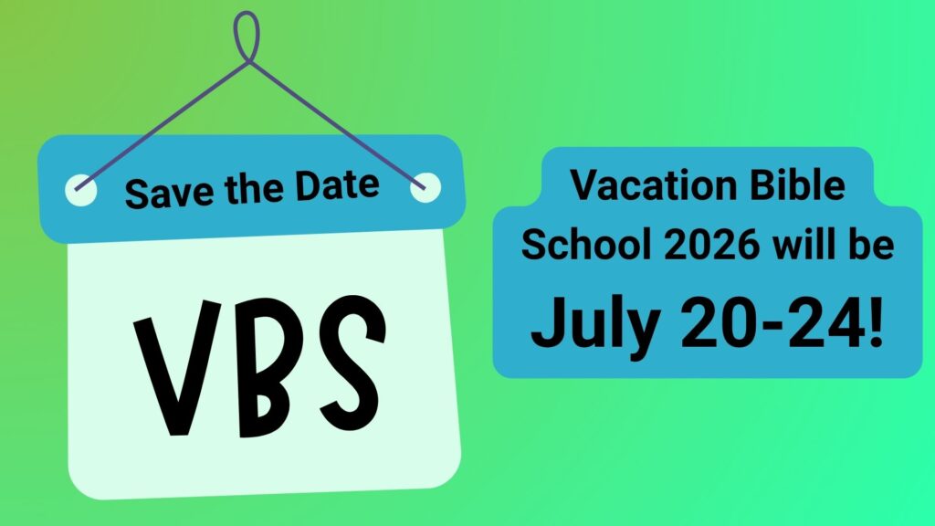 Vacation Bible School 2026 will be the week of July 20 through 24. The theme will be announced in early 2026. Please add this to your calendar.