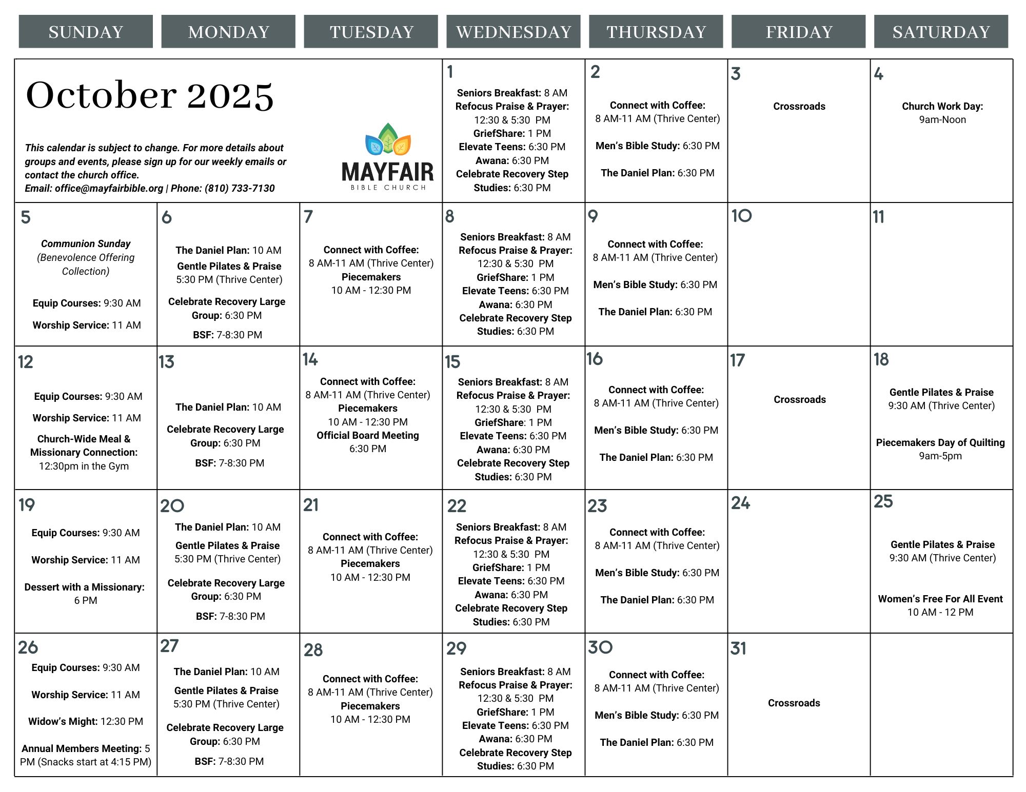 Are you new to Mayfair and want to learn more about our ministries and pastors? Have you been attending for a while and are interested in joining the church as a member? You are invited to Discover Mayfair on Sunday, November 9th at 12:30 PM. We’ll gather for lunch after the morning worship service and we will share about Mayfair’s history, ministries, leadership teams, and pastors.