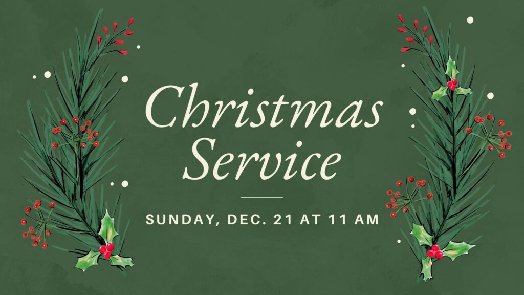 Our Christmas service will be on Sunday, December 21 at 11am. Join us for this joyful celebration!