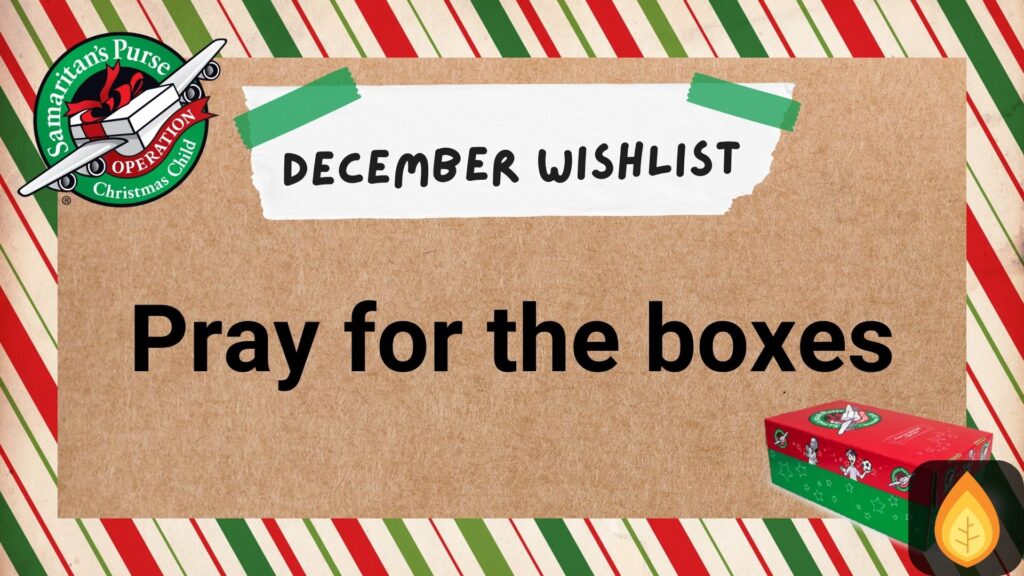 In December, we ask that you spend time praying over the boxes that are now at the processing center. Pray also for the recipients of the boxes, as these will start making their way around the world in the new year.